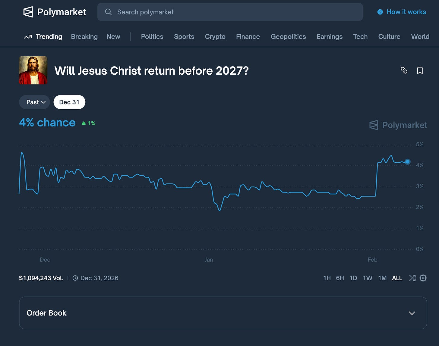 From betting if Jesus is making a return this year (no joke, this is a bet on Polymarket), to Trump being impeached or Jeffrey Epstein still being alive.