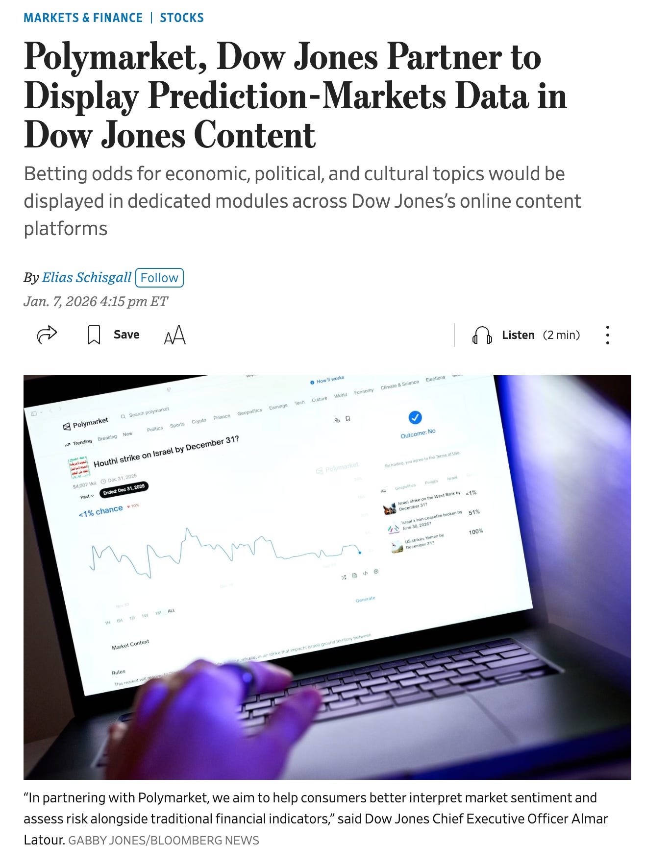 As you can see, Dow Jones is already partnering with Polymarket, along with CNN and CNBC, with Kalshi.